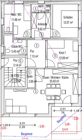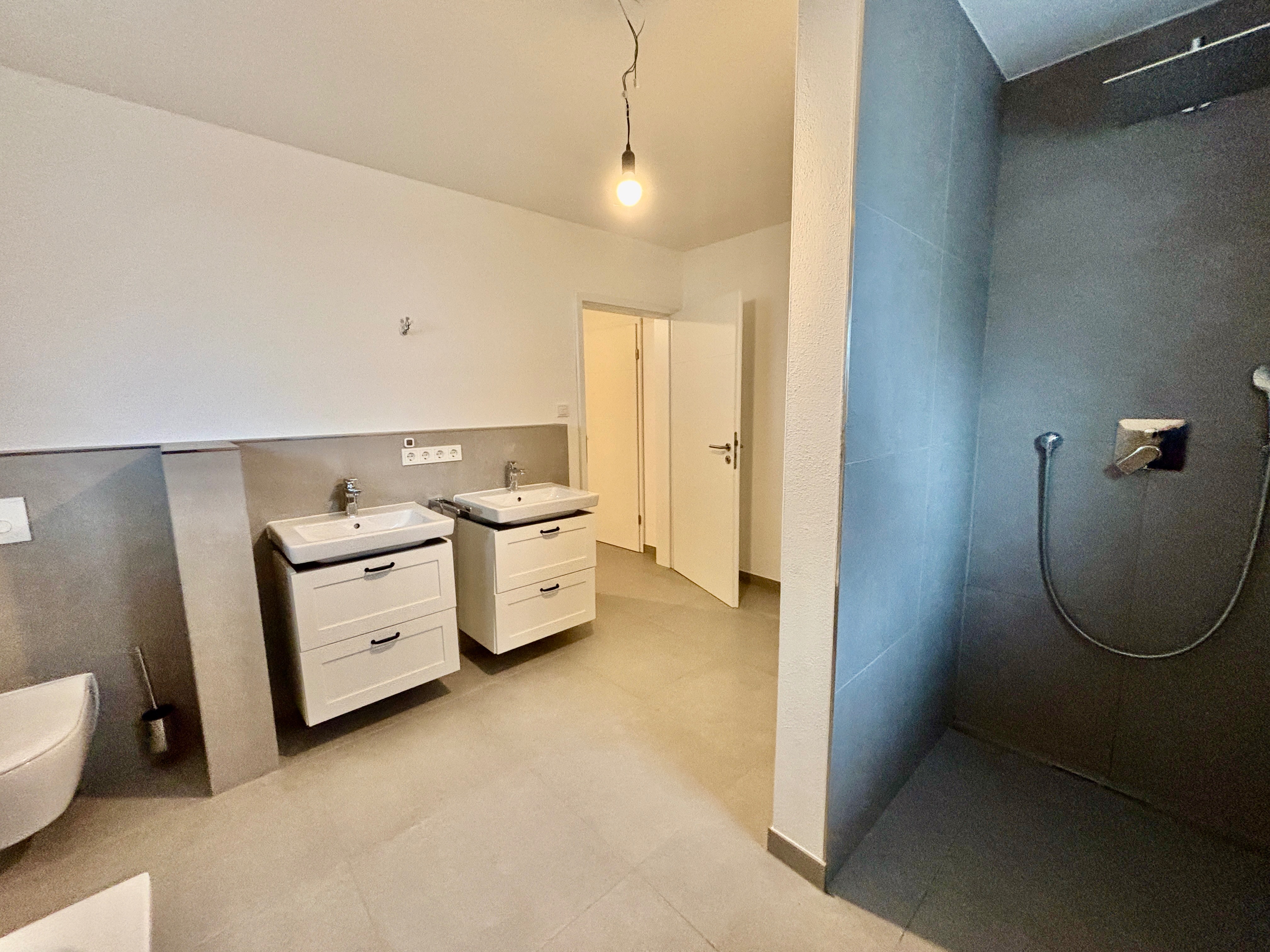 Das stilvolle Badezimmer (ca. 11,66 m²) verfügt sowohl über eine Badewanne als auch eine Dusche und lädt zum Entspannen ein. Ein separates Gäste-WC mit Dusche (ca. 5,43 m²) sowie ein praktischer Hauswirtschaftsraum mit Waschmaschinenanschluss (ca. 2,18 m²) sorgen für zusätzlichen Komfort. Besonders hervorzuheben ist die durchdachte Ankleide (ca. 6,62 m²), die ideal zwischen Schlafzimmer, Bad und Hauswirtschaftsraum gelegen ist. Nicht zu vergessen ist der große Flur mit 7 m² mit viel Gestaltungsoptionen.