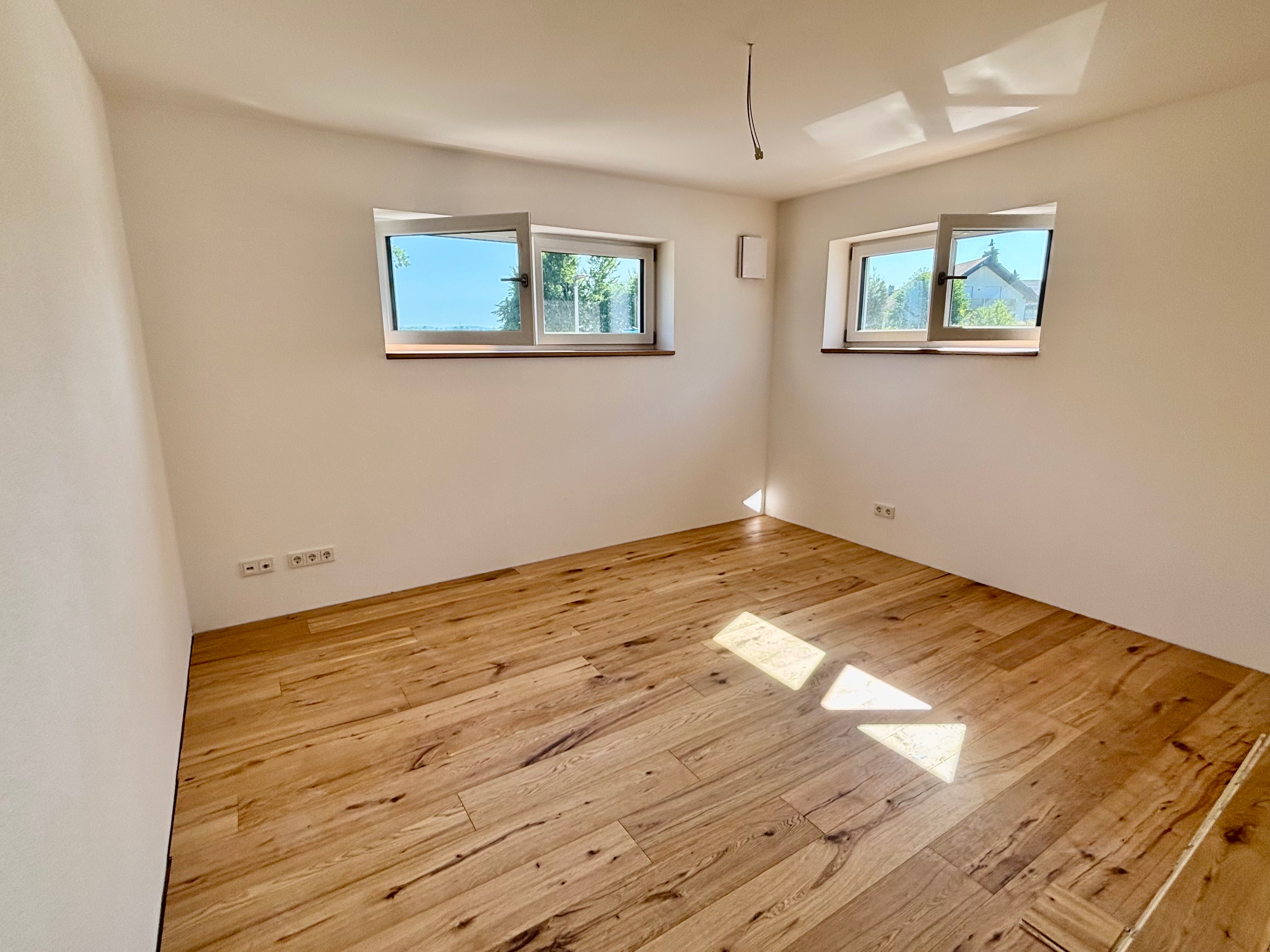 Im ausgebauten Dachgeschoss eröffnet sich zusätzlicher Wohnraum: Zwei helle Zimmer eignen sich ideal als Kinderzimmer, Arbeitszimmer oder Gästeeinheit. Ein weiteres Badezimmer/WC sowie ein kleiner Flur komplettieren diese Etage.