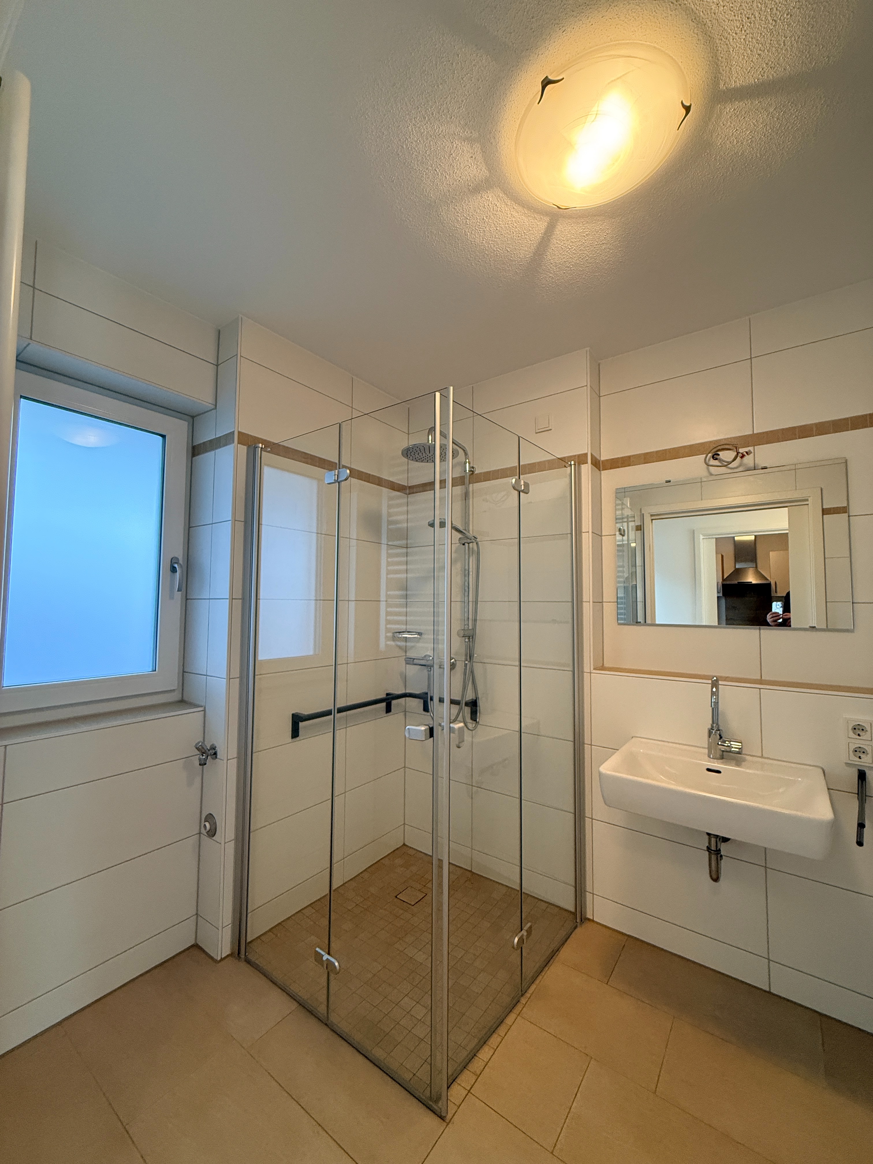 - Ausstattung des Bades Dusche Fenster
